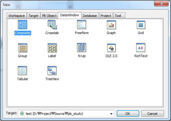 New 창을 열고 DataWindow 탭을 클릭합니다.